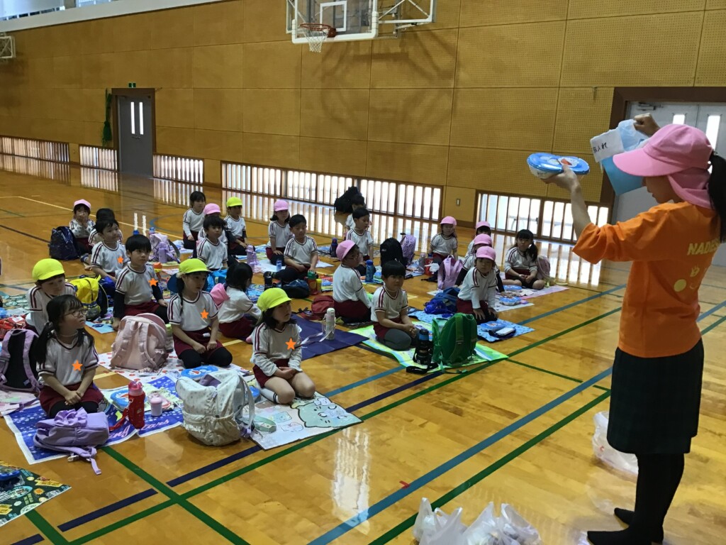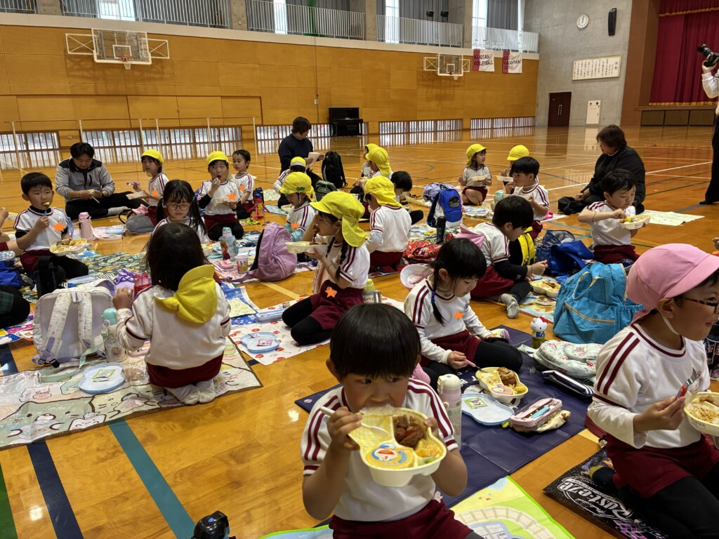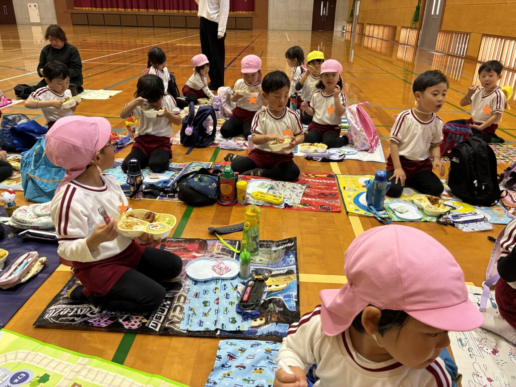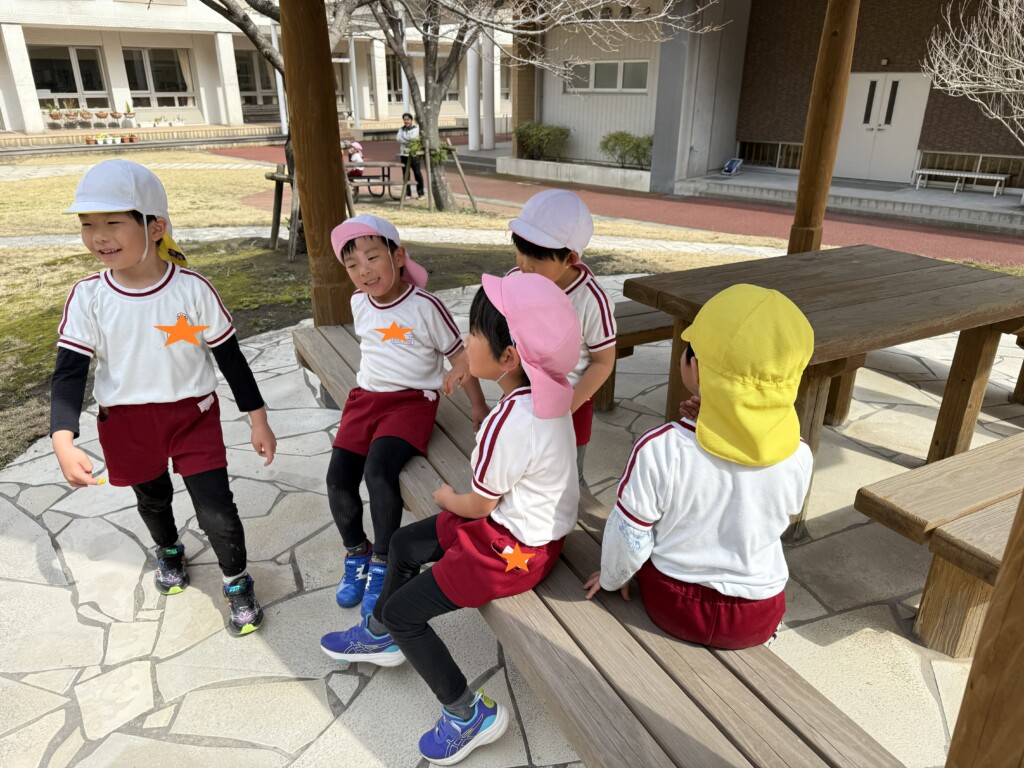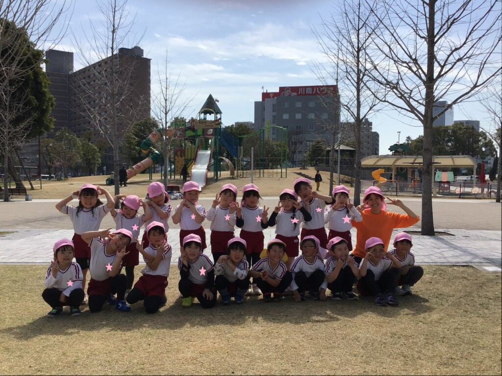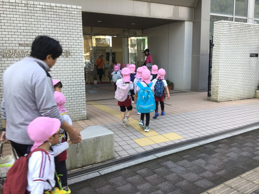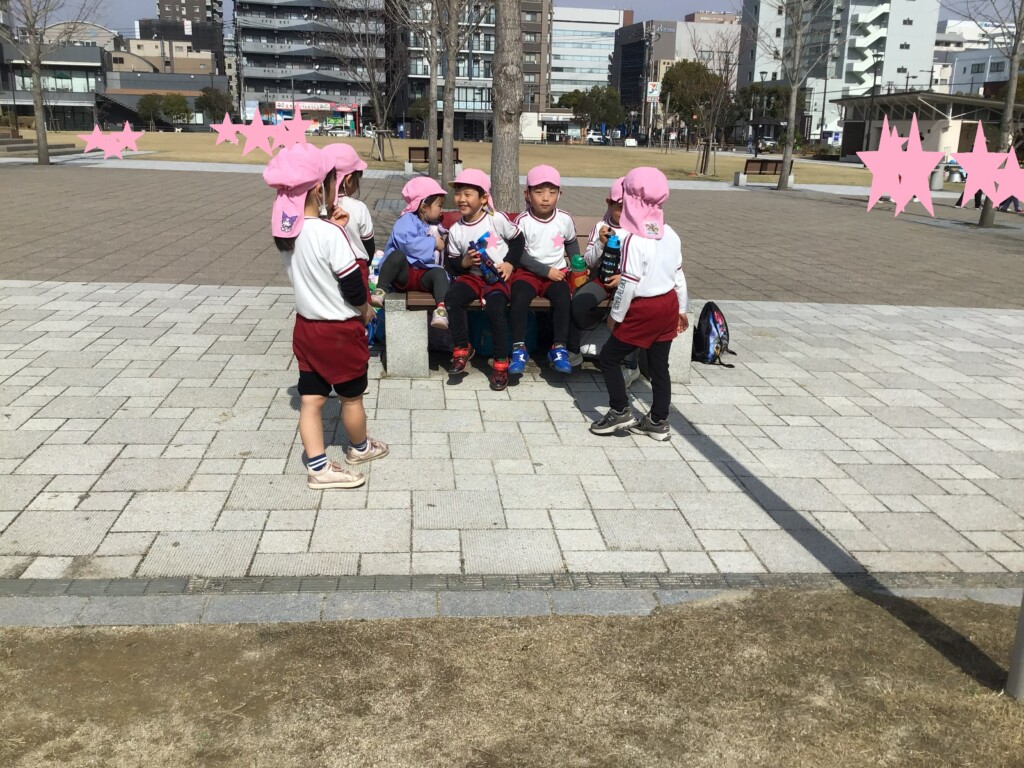 その後は、志學館学園系列の鹿児島女子短期大学まで歩いていき、体育館で食事をとったり、中庭で遊んだりしました。もうすぐ進級ですが、今のクラスのお友達や先生たちと沢山の思い出ができ、良い一日となりました(*’▽’)💖残り短い年中組さんでの生活も、目一杯楽しんでほしいです!!