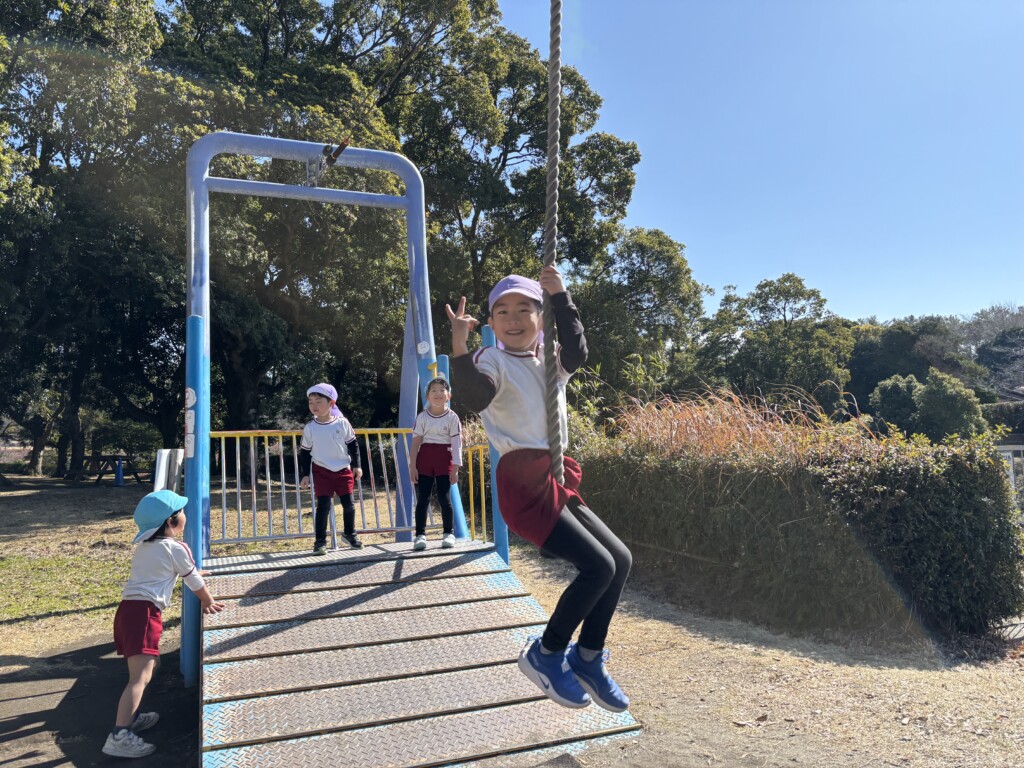大きな滑り台に、ターザンロープ、アスレチックなど色々な種類の遊具で遊んだり、鬼ごっこやかくれんぼをしたりしていました🎵