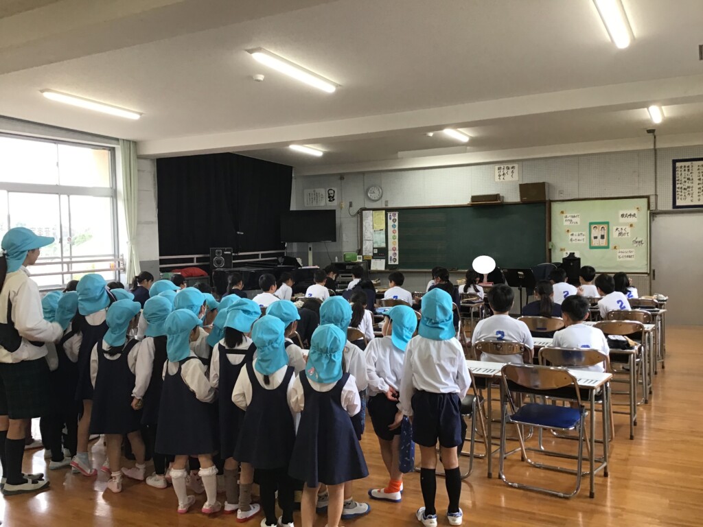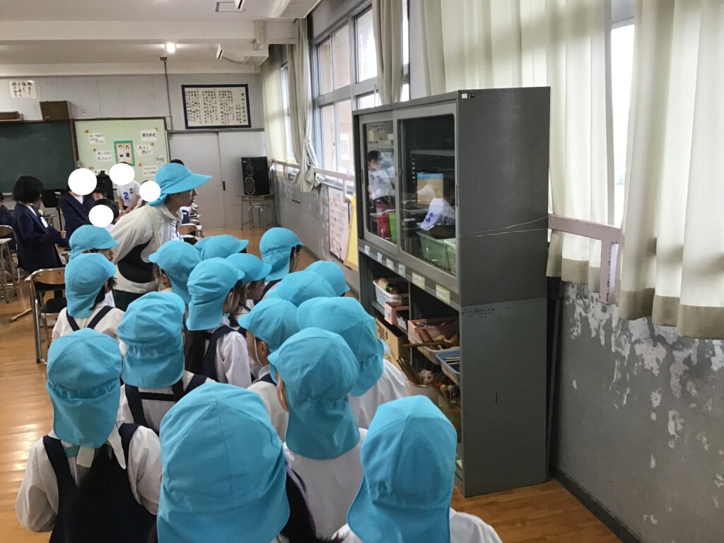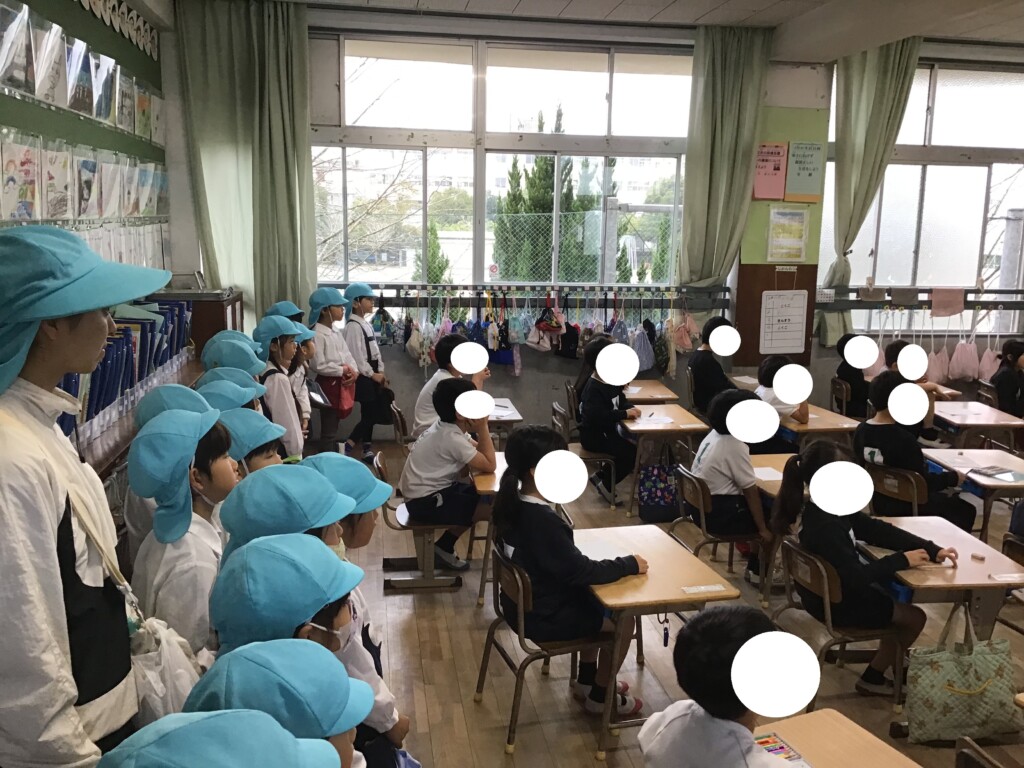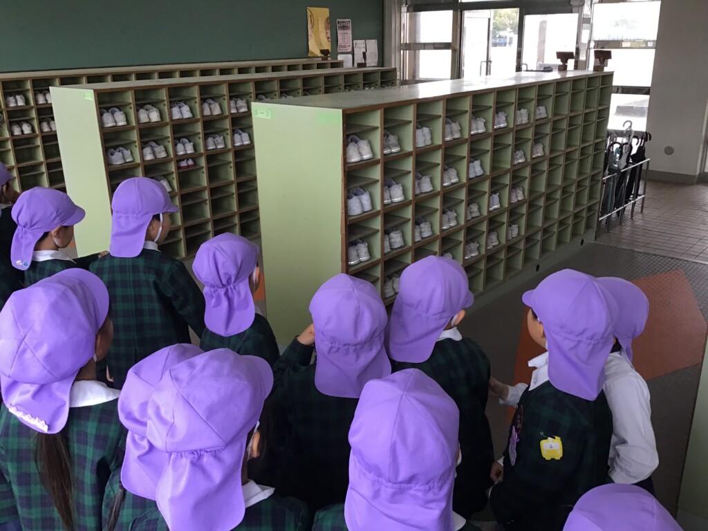 2月25日に年長組で、隣にある明和小学校へ、小学校の見学に行きました!“小学校に行ったら、どんなことを勉強しているのかな?どんなお部屋があるのかな?”など、前日からとてもわくわくしている様子でした。学校に着くと、まずは1年生の教室へ!去年まで一緒に遊んでいた年長組のお友達が、一生懸命勉強をしている姿に「かっこいいな~」と憧れのまなざしで見ていました!他にも教室に飾られている習字や、観察日記を見て、「絵が上手!」「僕もやってみたいなあ…!」など、小学校での活動にも期待を高めていましたよ♪