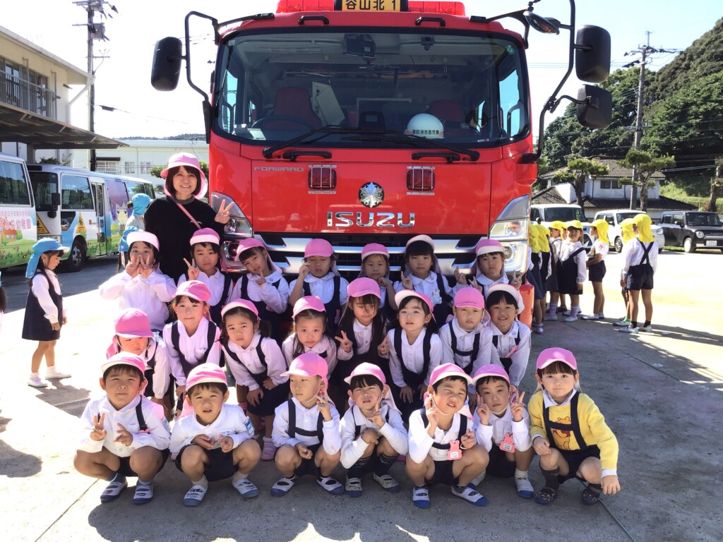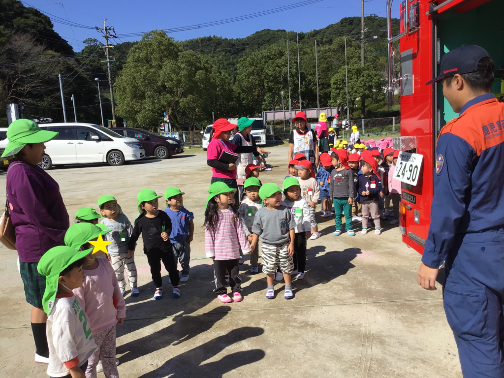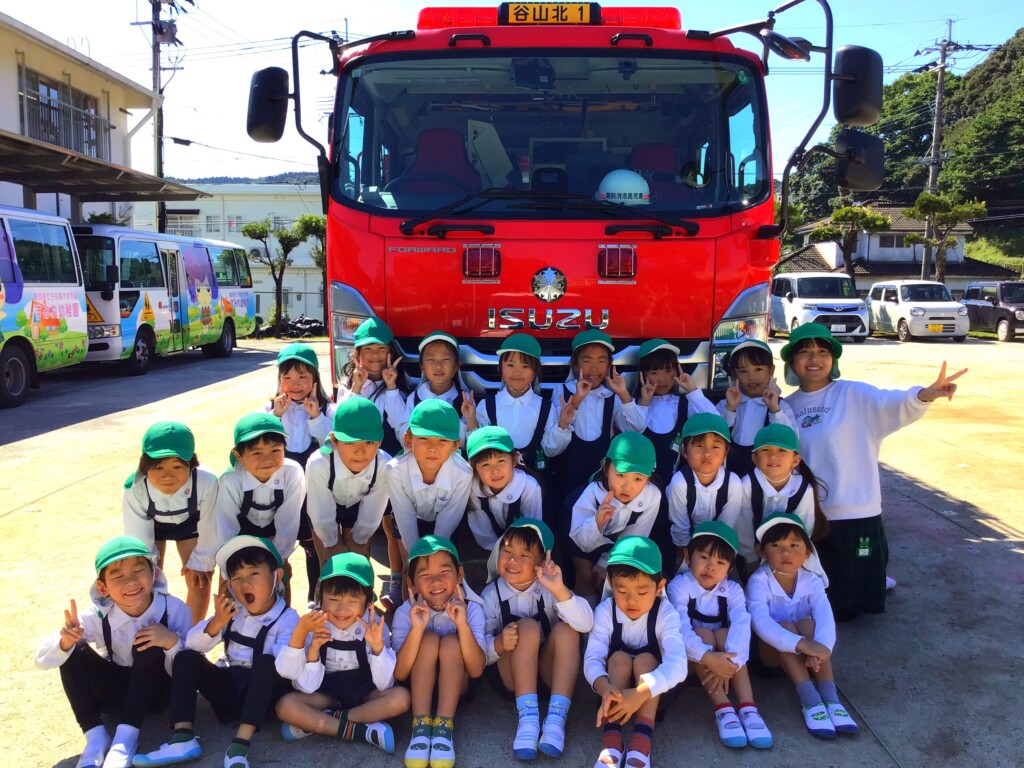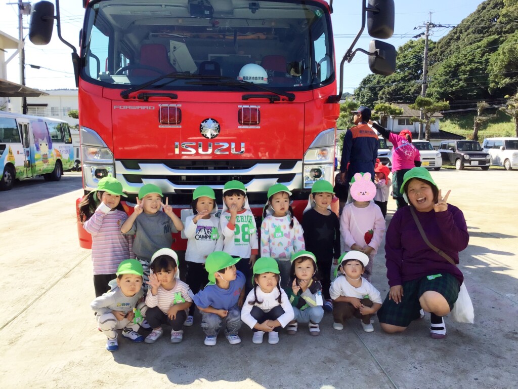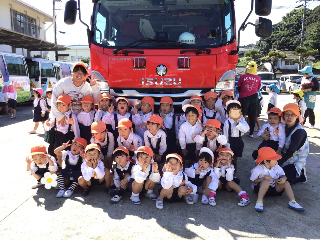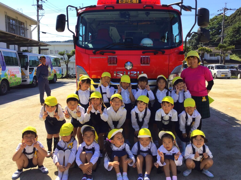最後は,消防車の見学もさせていただきました。消防士さんに質問したり,ハイタッチをしたりすることができて嬉しそうな子ども達でした♪
