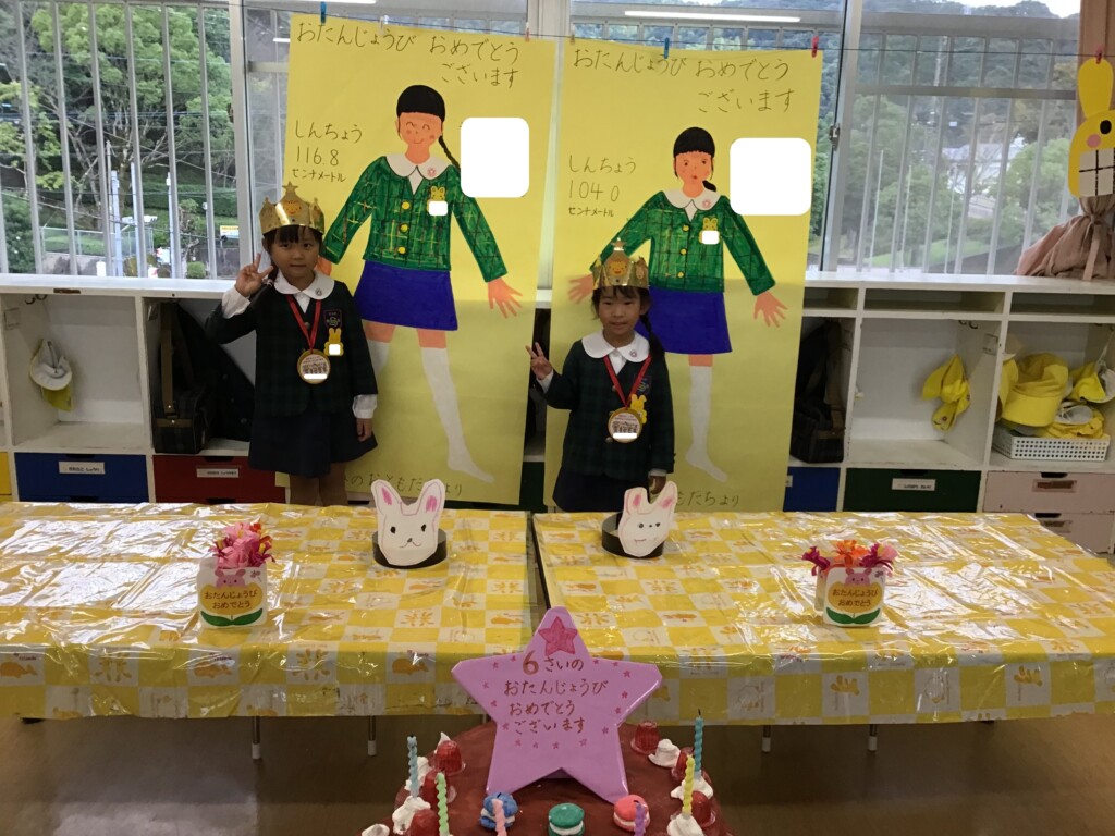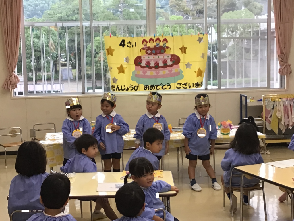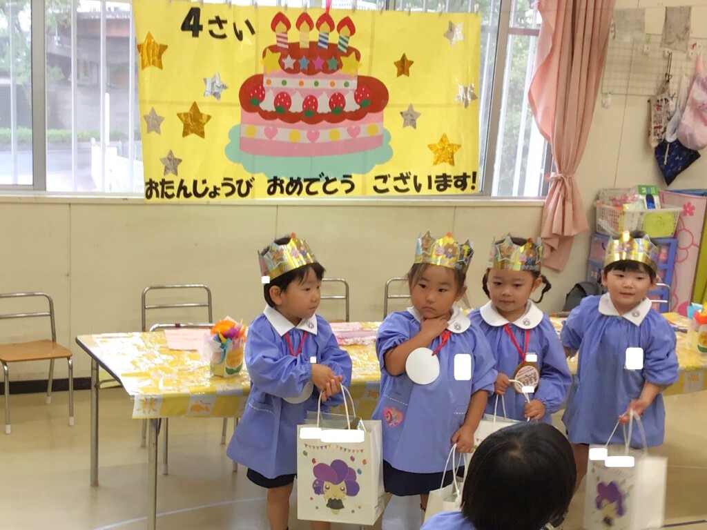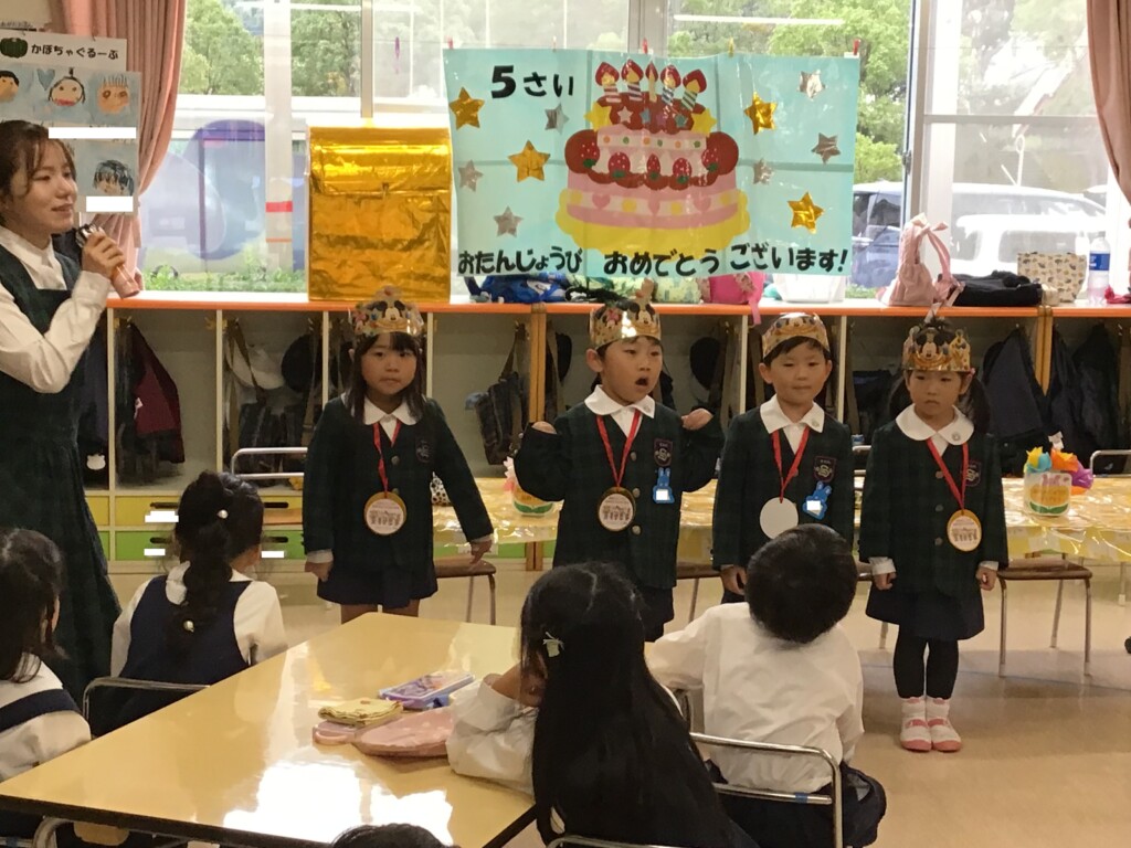 各クラスでの誕生会では,インタビューやプレゼント渡しをしたり,ケーキを食べたりして楽しい誕生会の時間を過ごすことができました♪