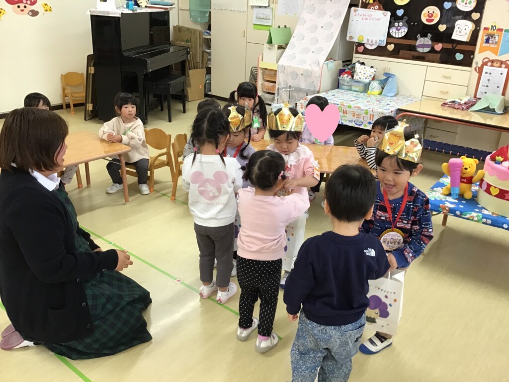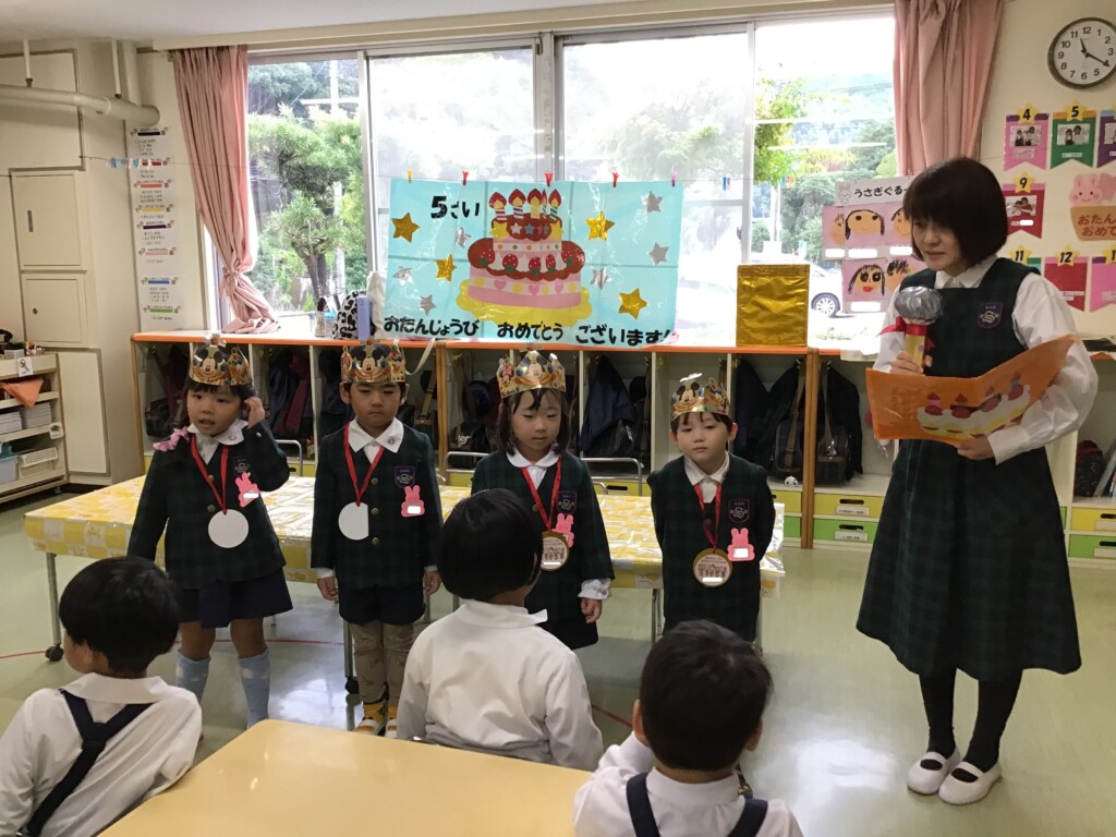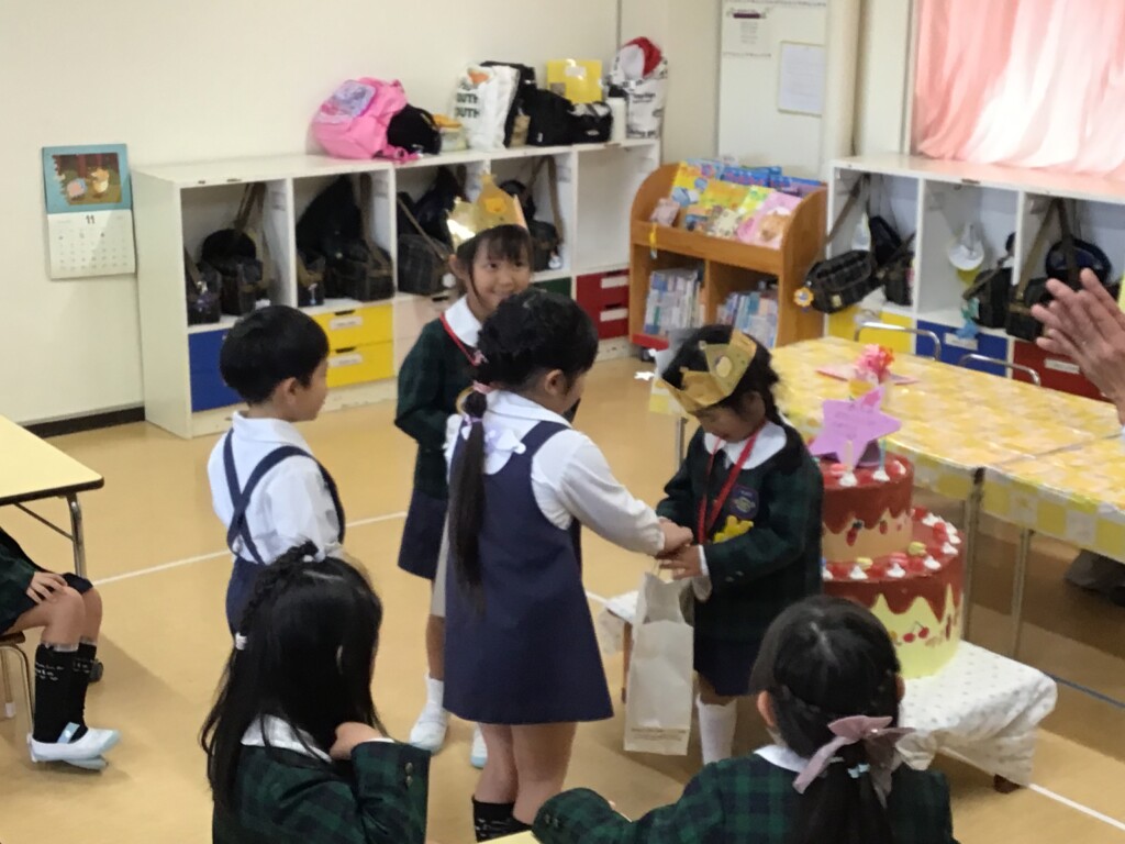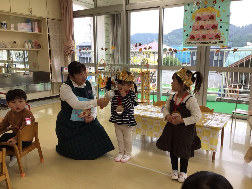 各クラスでの誕生会では,インタビューやプレゼント渡しをしたり,ケーキを食べたりして楽しい誕生会の時間を過ごすことができました♪
