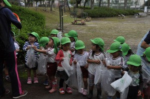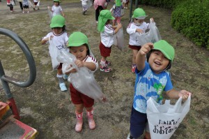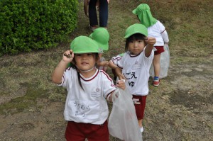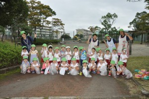 グランド公園に着くと、一人一人袋を持ち、どんぐりを拾い始めました。