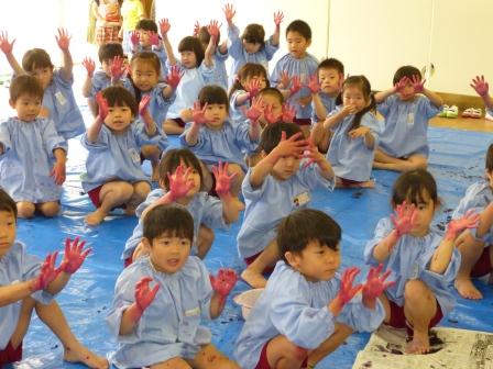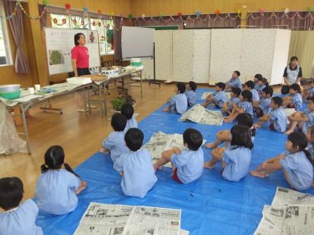 しかし,梅干しの色は赤色・・・・どうしたらいいか考えると,先生が魔法の液を出してくれました。もんだしその入ったボールにその液を入れると・・・不思議なことに真っ赤になりました。子どもたちは「赤くなったー!!」「すごいね!」と大興奮でした。